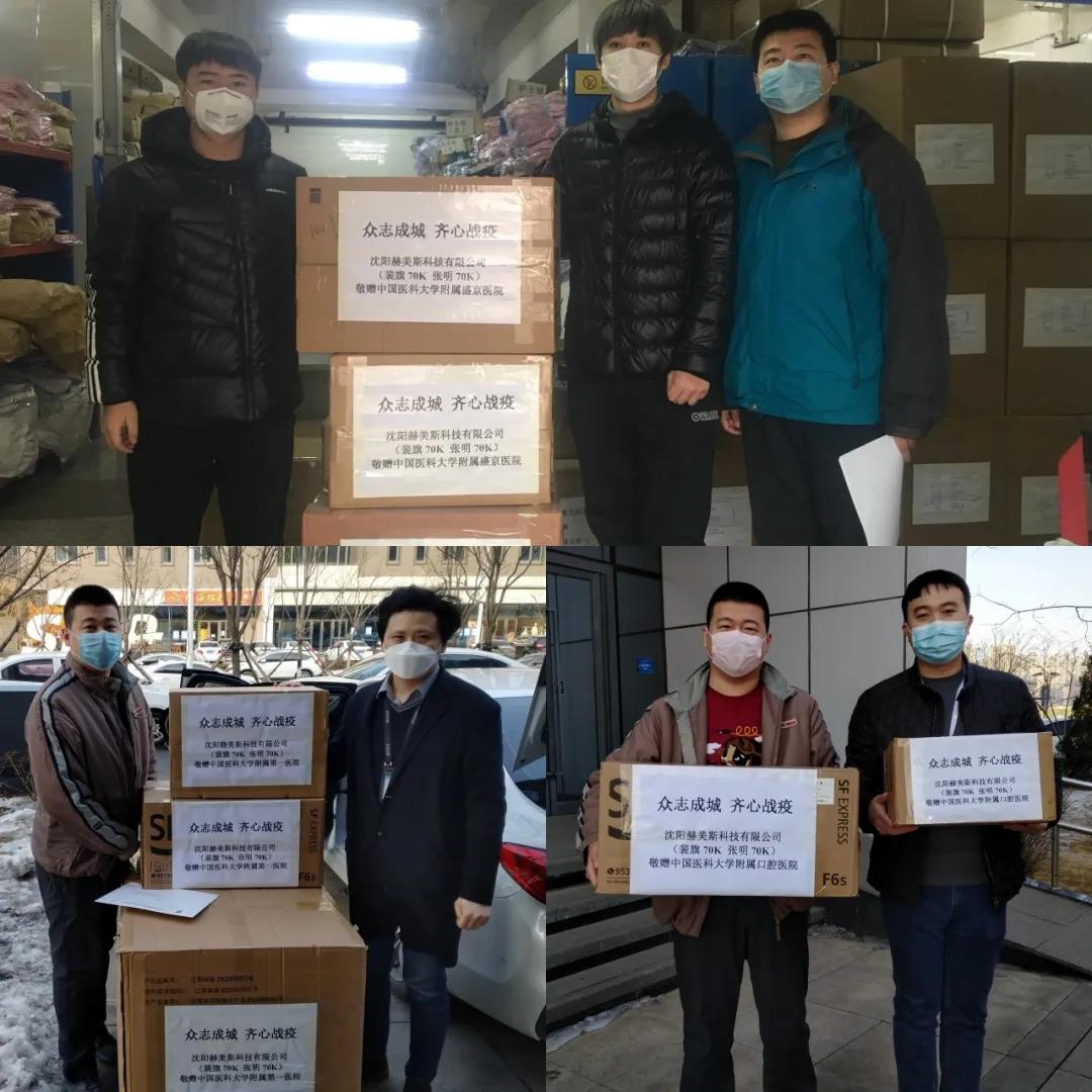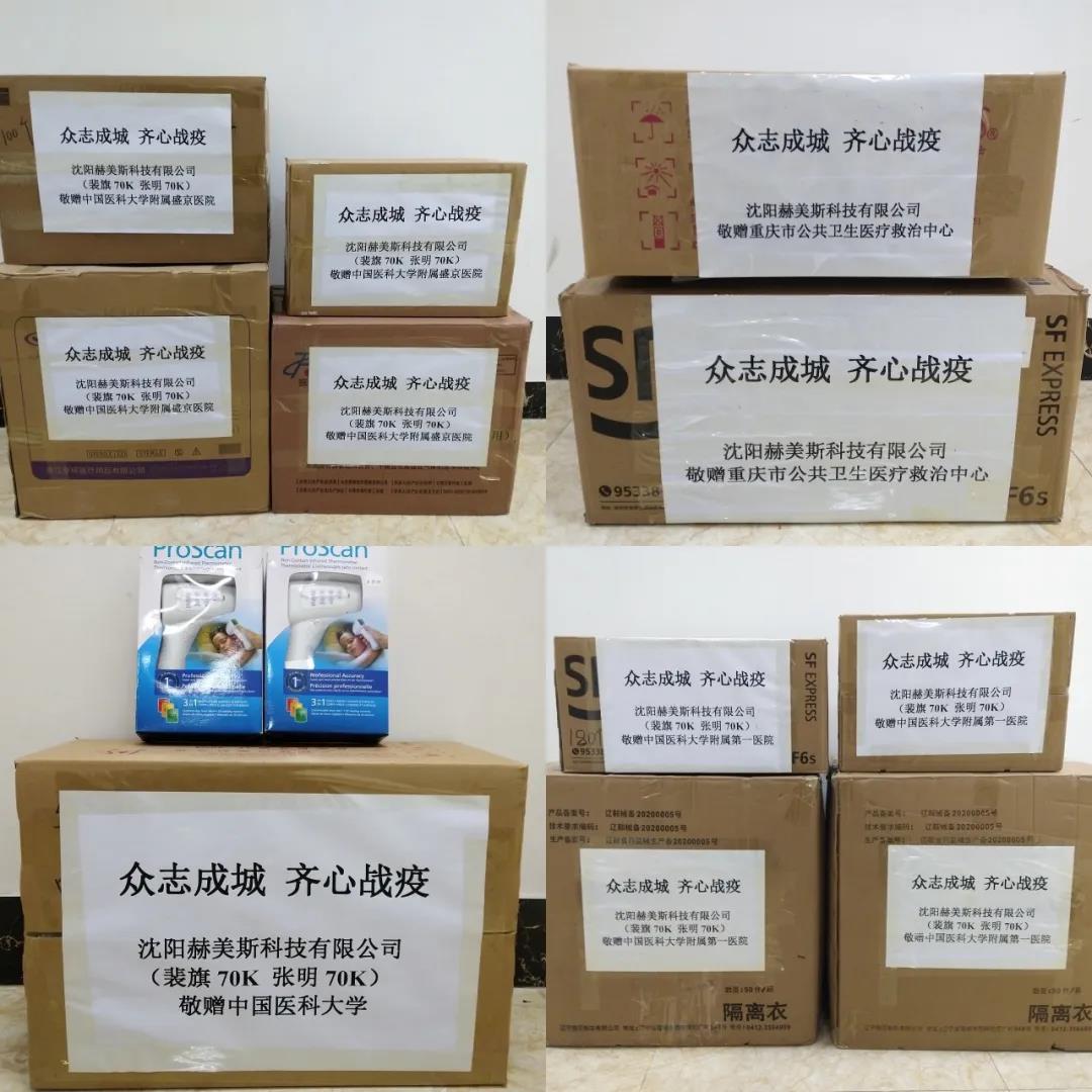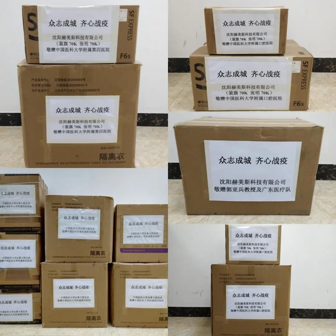 因為防護(hù)物資缺乏,前線醫(yī)護(hù)人員不斷感染病毒,全國人民心急如焚,赫美斯人也積極行動起來通過各種渠道,從中國、美國、加拿大、德國緊急采購了醫(yī)用外科口罩、醫(yī)用N95口罩、隔離衣、防護(hù)頭罩、防護(hù)面罩、進(jìn)口醫(yī)用防護(hù)鏡、進(jìn)口醫(yī)用額溫槍、消毒液等一大批防護(hù)物資及醫(yī)療設(shè)備和耗材,緊急馳援捐贈給中國醫(yī)科大學(xué)各附屬醫(yī)院醫(yī)療隊及湖北前線抗疫將士,為戰(zhàn)疫助一臂之力。